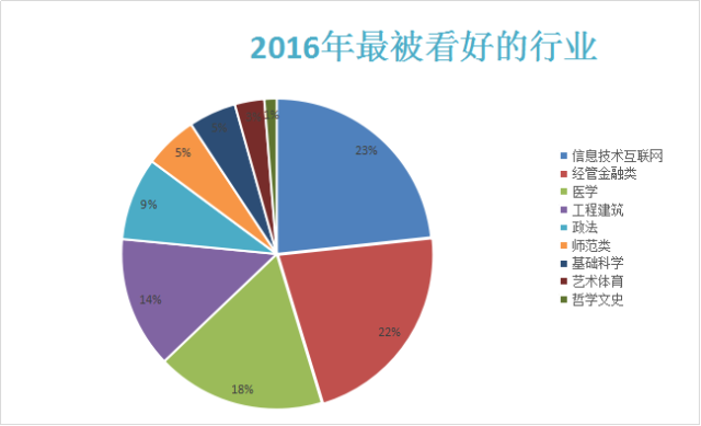 在样本调查过程中我们发现,在中国互联网行业崛起的大前提下,大家对信息技术互联网行业持看好态度,占比23%。经管金融类紧随其后。这个“看好”大多含有主观意识。我们可以用CIER指数来反应一个行业的就业情况