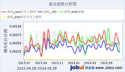 以北京上海广州深圳以及新一线城市杭州这5个地区为例,分析近几年来java,php,web前端以及.net工程师的就业趋势。