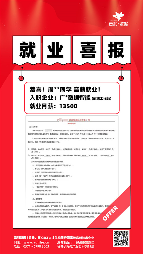 【云和数据学员就业】每一发奋努力的背后,必有加倍的赏赐,最近同学们都很拼,都很努力,结果换来的都是不断的惊喜!