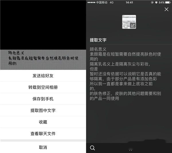 把需要识别的图片发出去,然后点击打开长按图片,就会出现选项,选择“提取图中文字”,QQ就会自动识别,还能编辑修改呢。