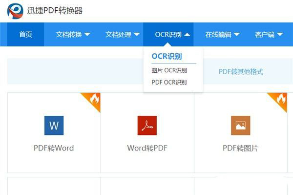 (1)在浏览器中搜索在线迅捷PDF转换器,点击网页后点击“OCR识别”——“图片OCR识别”。