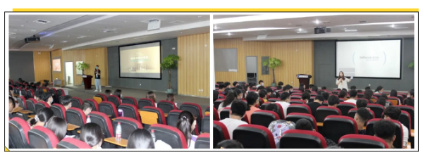 参观结束后,郑州市电子信息工程学校师生一行来到了云和数据多媒体报告厅。在这里,云和教育UI教研组组长安老师,给大家带来了一场精彩的“电商中的UI设计”主题讲座。安老师通过自身经历和电商营销实例,给同学们分析了电商产业现状、进入电商行业如何进行职业选择、做UI设计师所要具备的技能等大家关心的问题。安老师幽默诙谐的话语,干货满满的内容,赢得了一阵阵笑声和掌声。