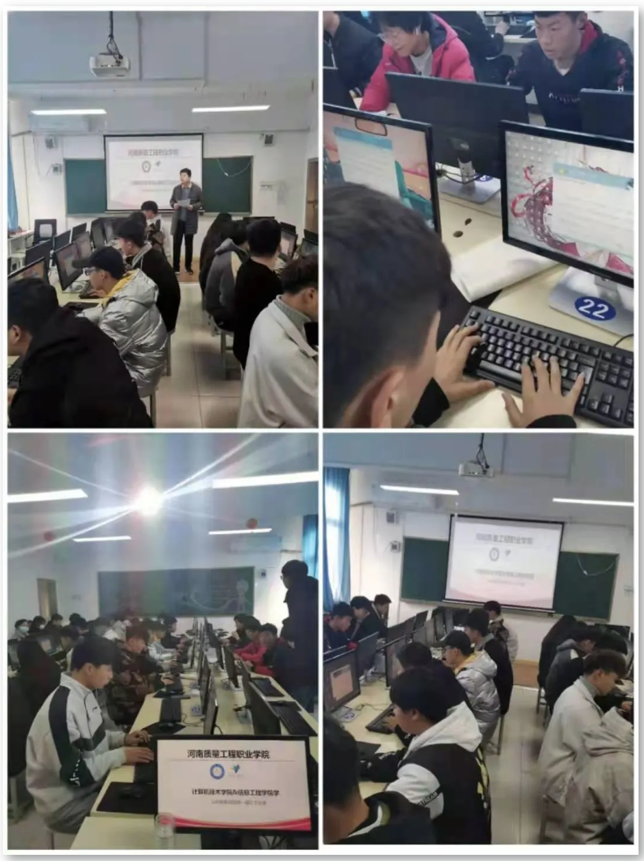 本次技能大赛学院领导亲临现场指导,并鼓励各参赛选手要赛出成绩、比出风格。比赛现场,各专业参赛选手心无旁骛,专心致志在计算机前有条不紊的操作。指导老师认真负责,对各选手的每一个动作都认真监督指导。