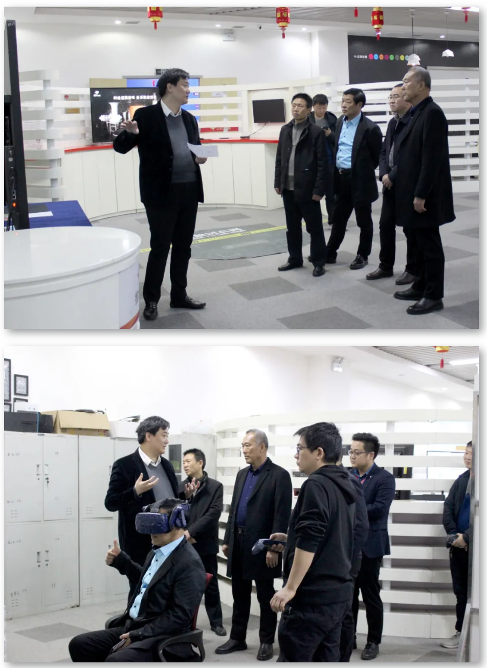 在技术体验中心,郭总向付局长一行展示了云和数据自主研发的奇异海、瓷器工坊、虚拟驾考等多项虚拟现实、混合现实、增强现实领域的产品和互动类游戏。付局长体验了云和数据的自研项目后,给予了高度的评价,也对云和数据自主研发的技术实力有了更进一步的了解。