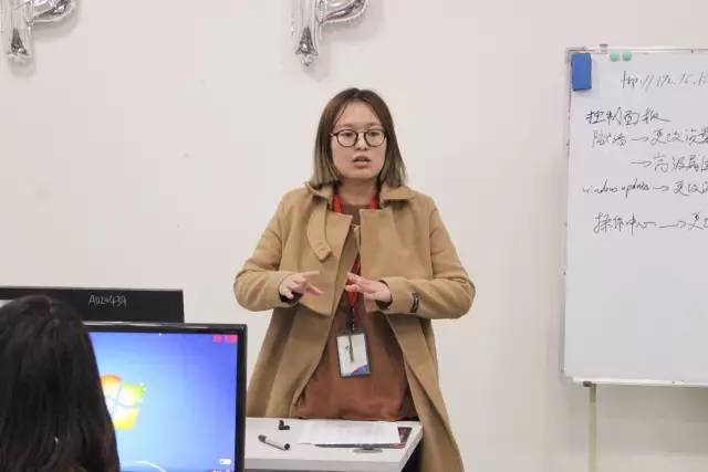 接下来是我们UI设计第一阶段任课老师——姜老师,她给大家讲了接下来需要学习的具体课程内容,同时姜老师告诉同学们,她所带的每个班级都会有福利(意外的收获有木有),以往的班级里学习优秀者可以拿到不同的软件资源,她决定这个班的优秀学员福利是——直接与老师一起做项目,更有机会获得名企内推名额。同学们大呼过瘾,给予了热烈的掌声。