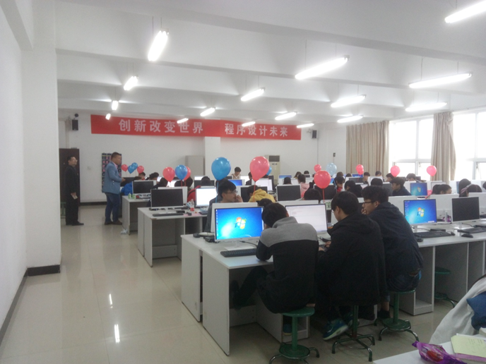 现场同学们团队协作,思维碰撞,经过选拨,优胜者将代表周口师范学院参加2017年国际大学生程序设计大赛(ACM/ICPC)中国河南区域赛。