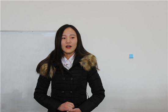 “我叫杜*坤,咱们班就只有我们两个男生,哈哈,福利真好!以后有啥活尽管找我,重的就陈*辉干,轻的呢,就交给我吧,哈哈……好,下面言归正传,我来云和学院之前,我们老师跟我说,人的一生想要在社会上立足得有两大绝技:能力和技术,我没有能力,好歹也得掌握一门技术吧,所以来到了云和,希望以后大家可以互相帮助,不会的地方大家相互讨论交流。”
