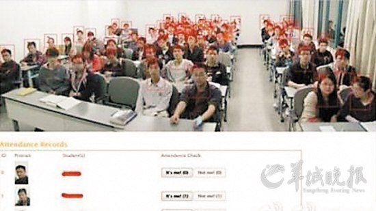 叒是本校老师杰作,计算机学院某副教授自主研发“刷脸机”,课堂上每个学生都被红色方框圈住并配有编号,系统瞬间生成学生的个人信息,谁在上课,谁逃了课,一目了然。
