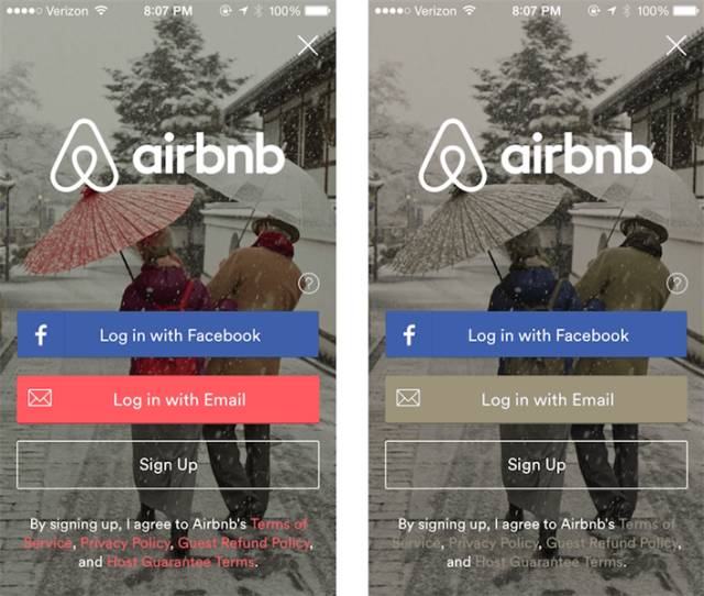 除了建立易读的文本之外,对比度还可以引起用户对屏幕上的特定元素的注意。 一般来说,高对比度是重要内容或关键元素的好选择。所以如果你想让用户看到或点击什么东西,可以使其与众不同! 举例来说,用户更可能点击与背景对比强烈的具有号召性的按钮。